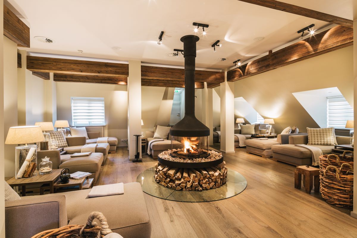 Wer bei schlechtem Wetter im Hotel bleiben möchte – oder auch einfach nur, um die Atmosphäre zu genießen, der kann den umfangreichen Spa- und Fitnessbereich nutzen. Zahlreiche Sportgeräte auf höchstem Niveau warten darauf ausprobiert zu werden. Der Wellnessbereich ist genau das Richtige für all‘ diejenigen, die Erholung und Entspannung suchen. Wer sich hier entspannen will, kann dies in der Salzsteinsauna tun, die sogar nach Geschlechtern getrennt ist. Meine persönliche Empfehlung ist die einstündige „Vier Jahreszeiten Massage“, bei welcher der ganze Körper mit erlesenen Ölen massiert wird. Zur Entspannung geht es dann ins Kaminzimmer, wo man sich nach erfolgter Massage bei einer Tasse Tee optimal erholen kann. Nach einem anschließenden Saunagang lässt es sich herrlich auf der Dachterrasse abkühlen. Wer im Hotel jedoch das kühle Nass sucht, wird lange beschäftigt sein. Hotelgründer Friedrich Haerlin hielt dies damals nämlich nicht für nötig. Seine Gäste hätten schließlich alle ein eigenes Schwimmbad.
